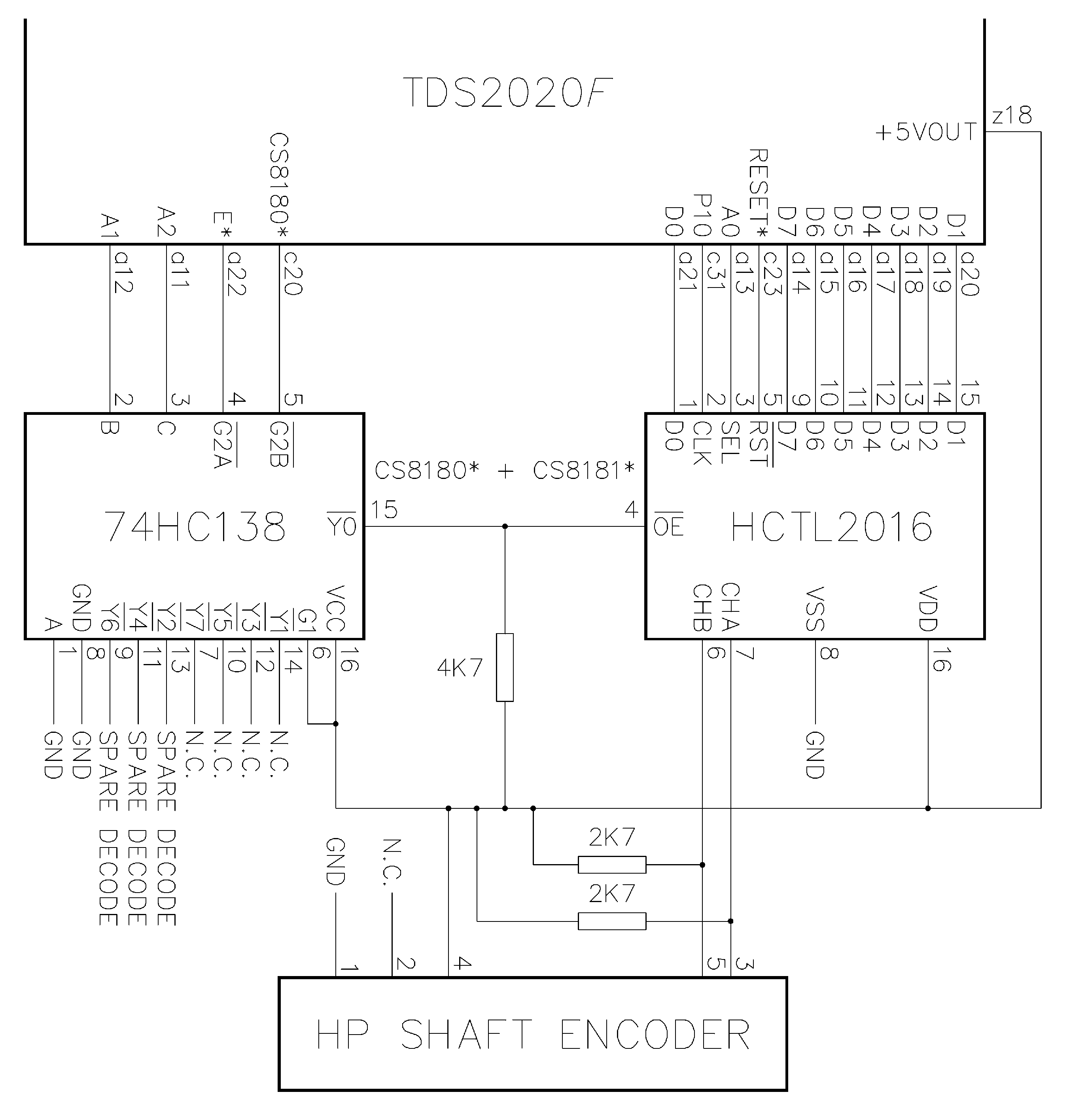 HCTL2016 quadrature shaft encoder integrated circuit to the TDS2020F computer. By using other chip selects